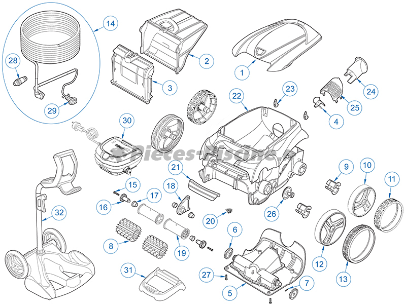 Poignée bleue pour robot électrique ZODIAC Vortex 2, Vortex 3, Vortex 3.2, Vortex 4, OV3510, RV4200, RV4310, RV4390 (pièce détachée d'origine Zodiac).