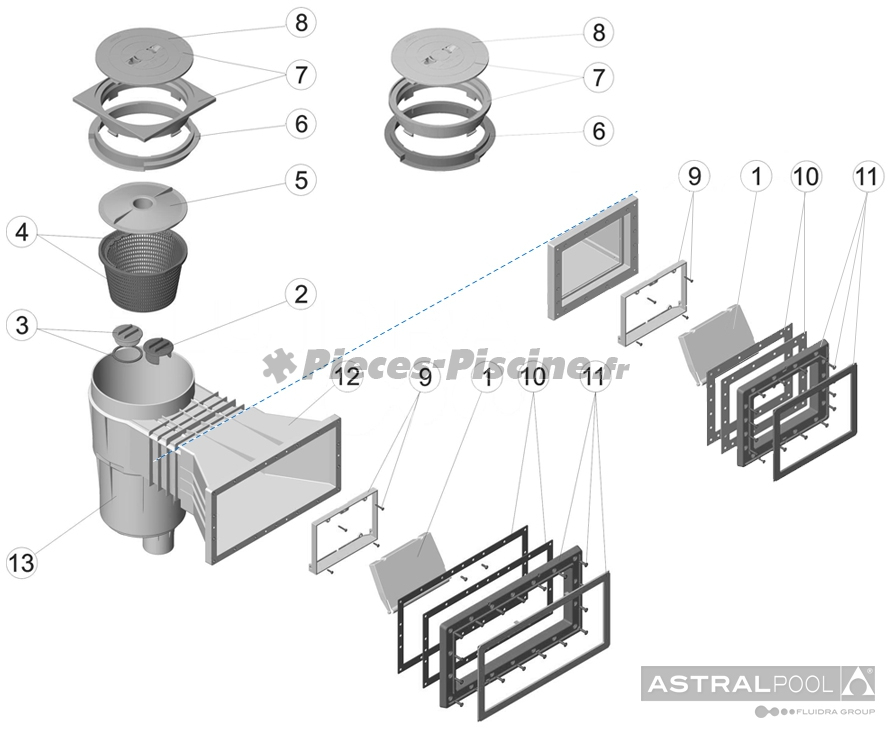 7 Couvercle + cadre rond skimmer ASTRAL Prestige